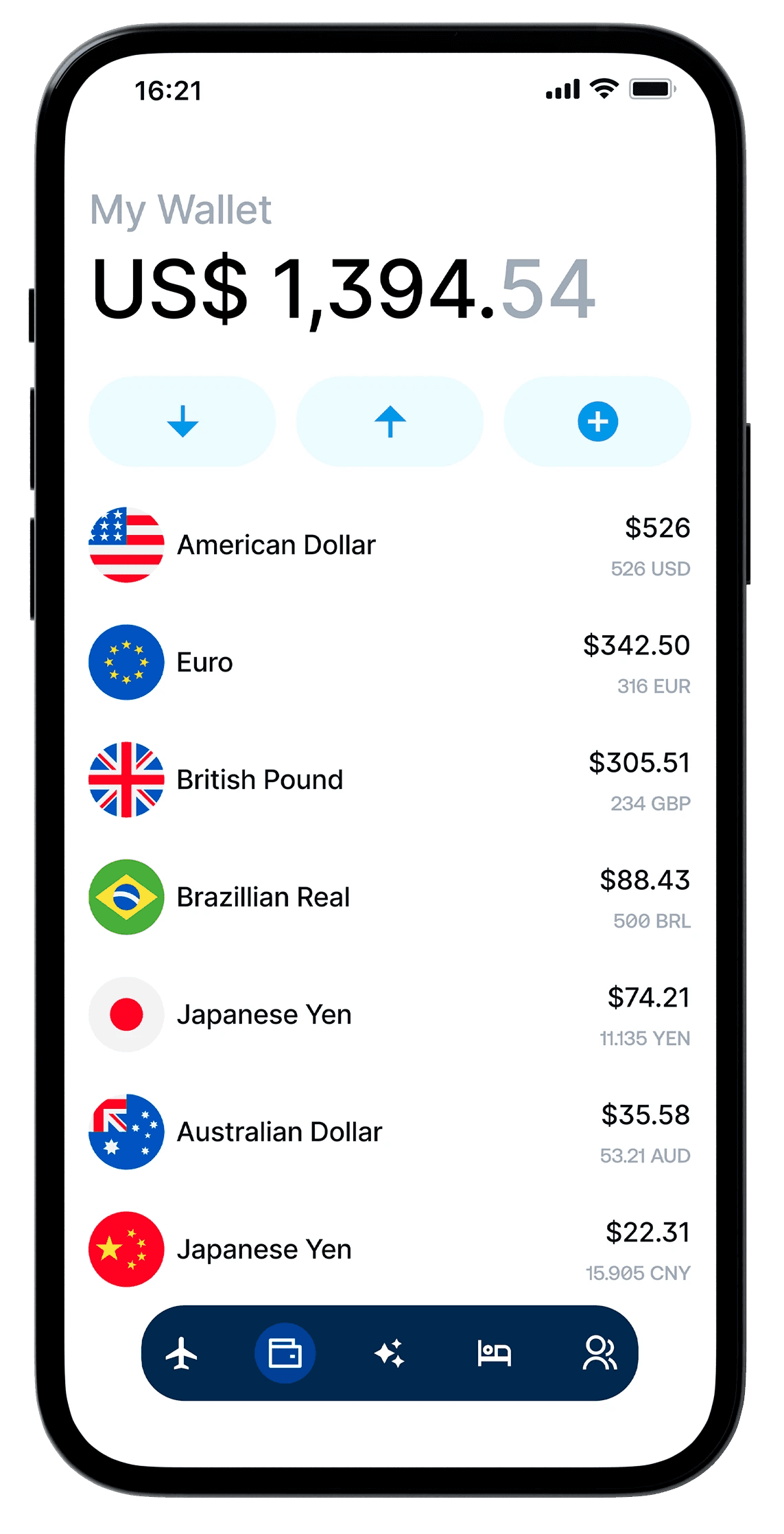 Handle multiple currencies in one place, making payments and conversions seamless during your travels.